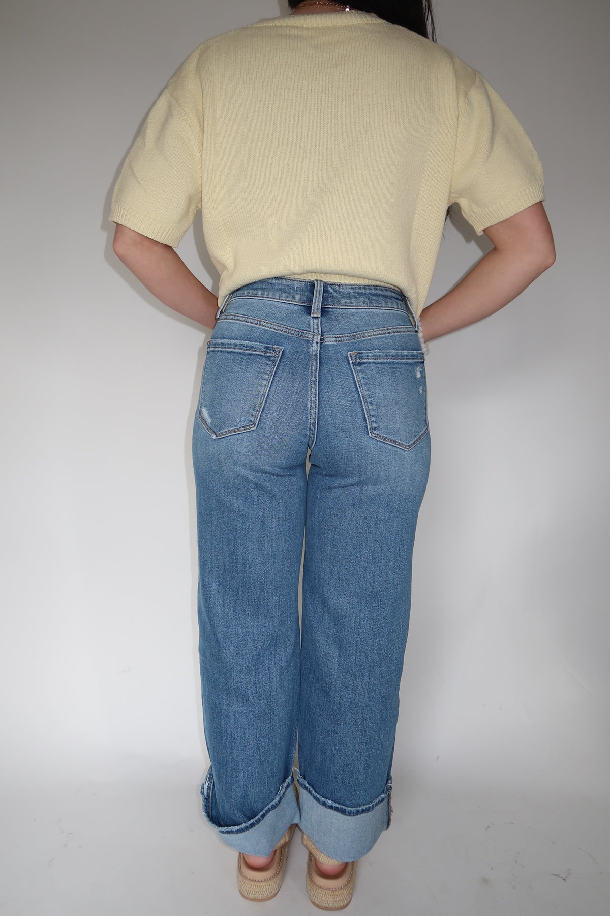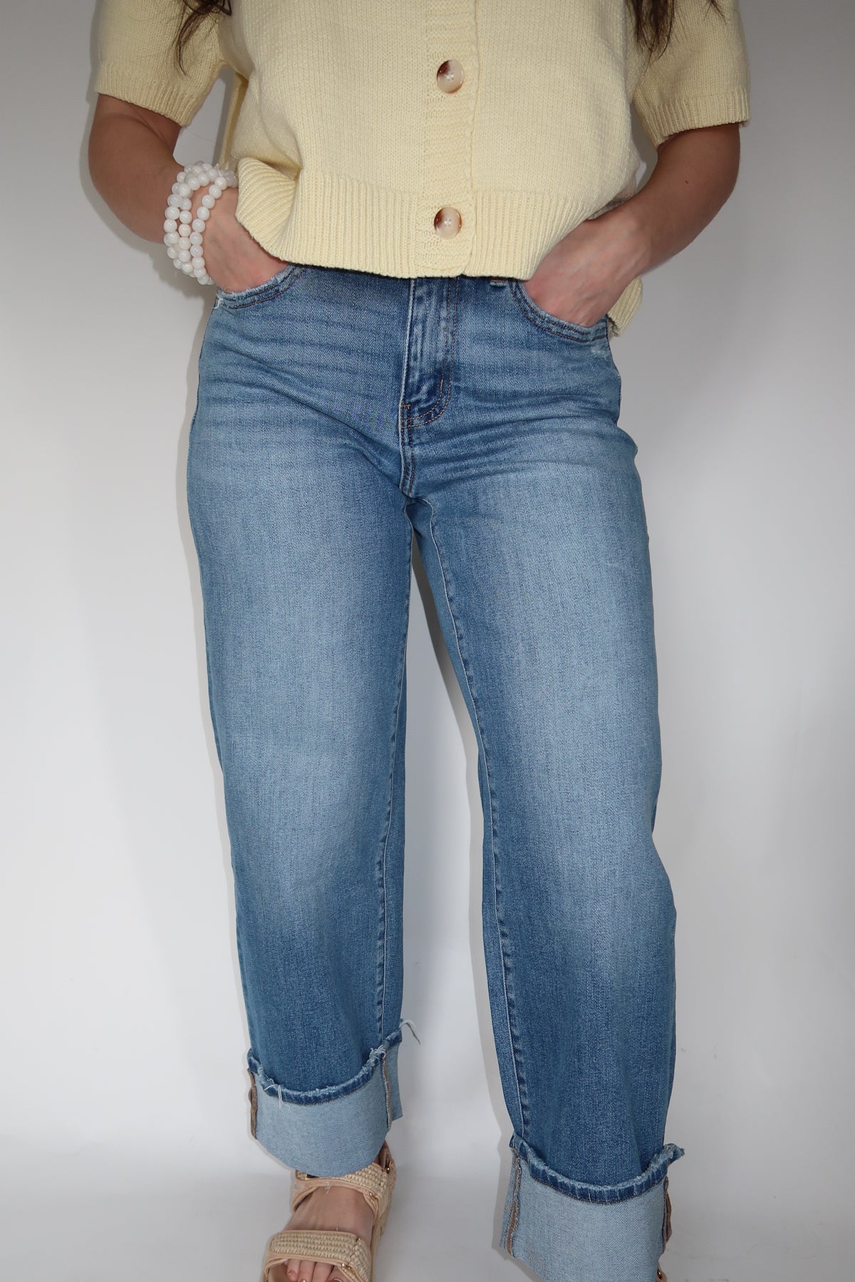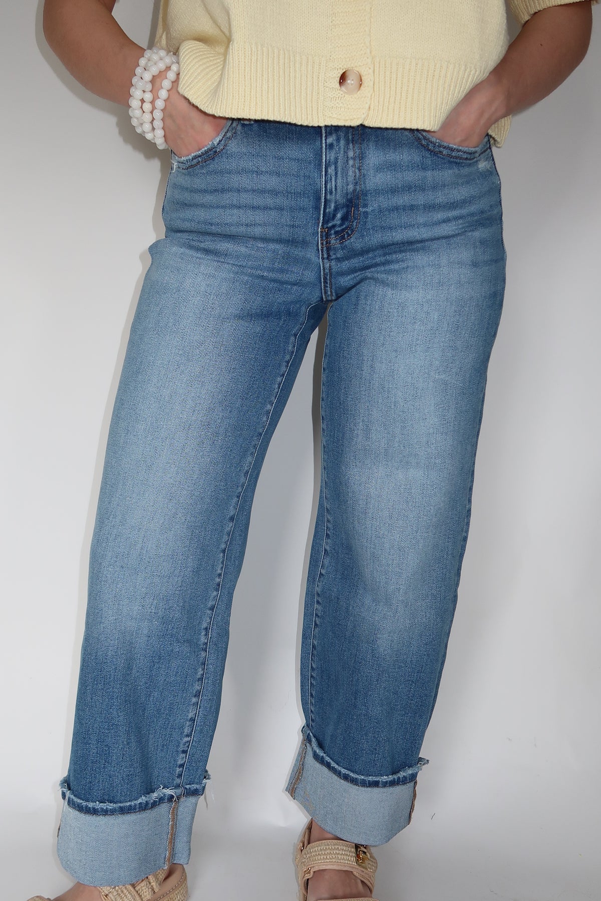 Upgrade your everyday denim with these flattering high rise cuffed wide leg stretch jeans, designed for both comfort and modern style. The high rise waist creates a smooth, slimming fit, while the comfort stretch denim moves with you throughout the day. The wide leg silhouette elongates your legs and gives a relaxed yet polished feel, and the cuffed hem adds an effortlessly on-trend finish. Perfect for pairing with blouses, sweaters, or casual tees, these versatile jeans will quickly become a go-to favorite in your wardrobe.