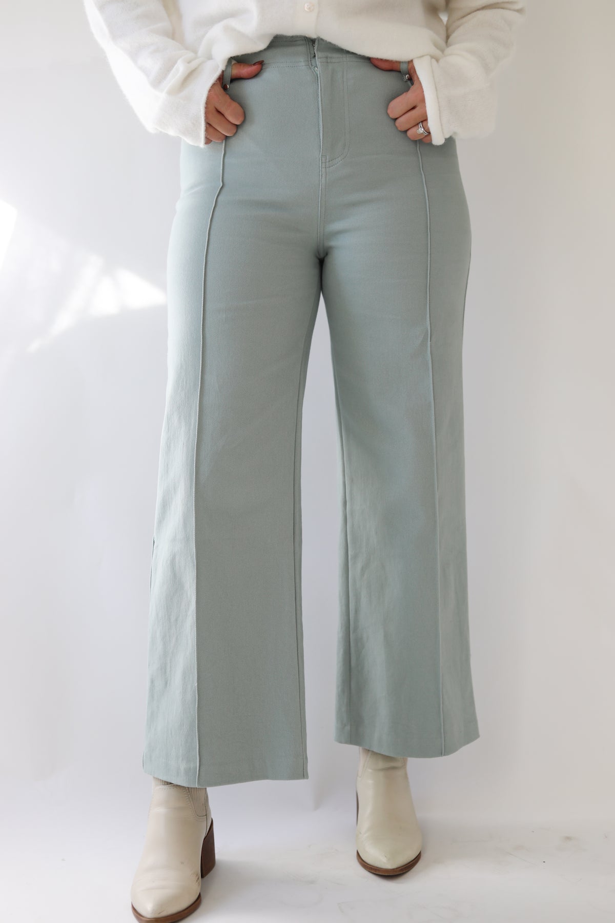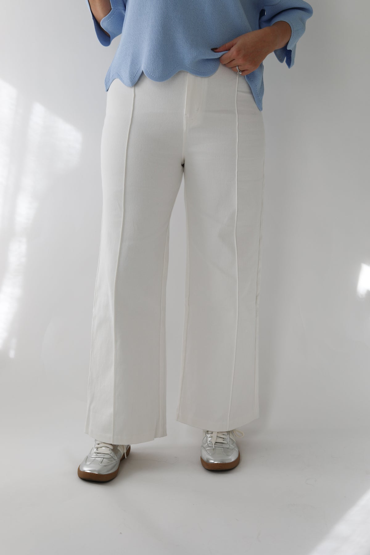 The Up For Anything Pant is designed for comfort, stretch, and everyday wear. Made from a super-soft cotton blend with plenty of stretch, these pants move with you while keeping a clean, polished shape. The front seam detail adds a lengthening effect, and the wide-leg silhouette makes them easy to style for work, errands, or weekends.