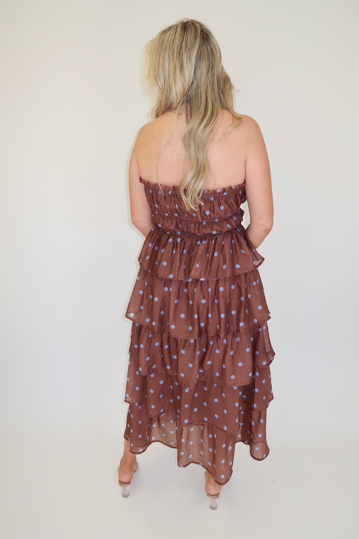 Mocha Polka Dot Tiered Midi Dress