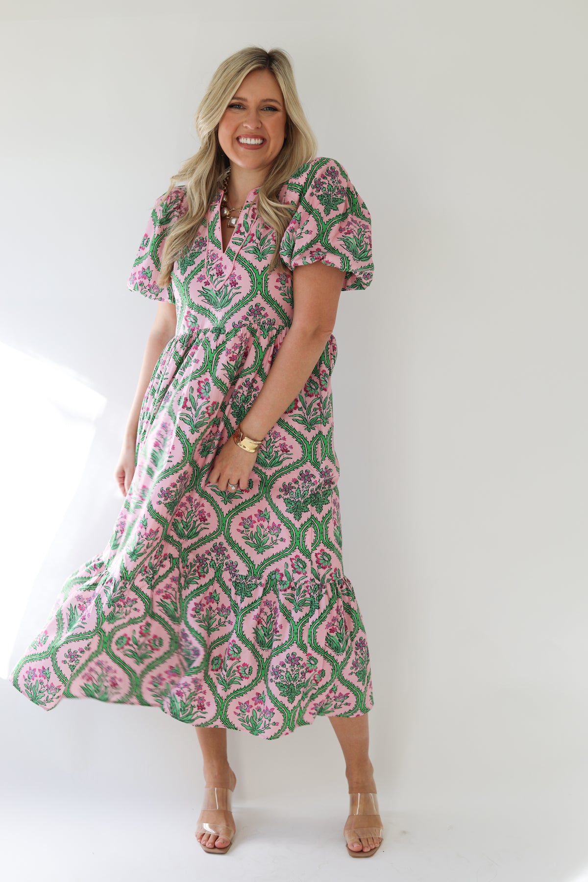 The Caught Your Eye Dress is the statement piece that’s still effortless to wear. Made from 100% cotton, it’s lightweight, breathable, and comfortable for all-day events. The bold block-print inspired pattern, puff sleeves, and tiered skirt give it a flattering, feminine shape—while the relaxed fit makes it easy to throw on and feel amazing.