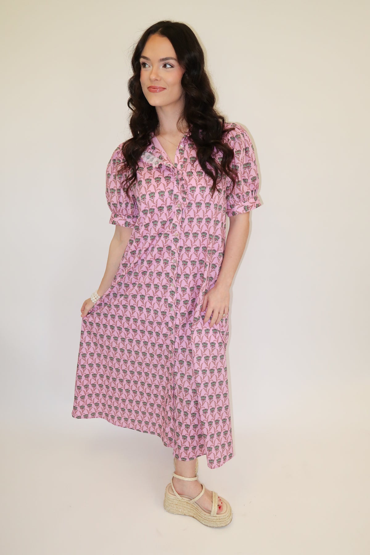 Pink Floral Midi Dress