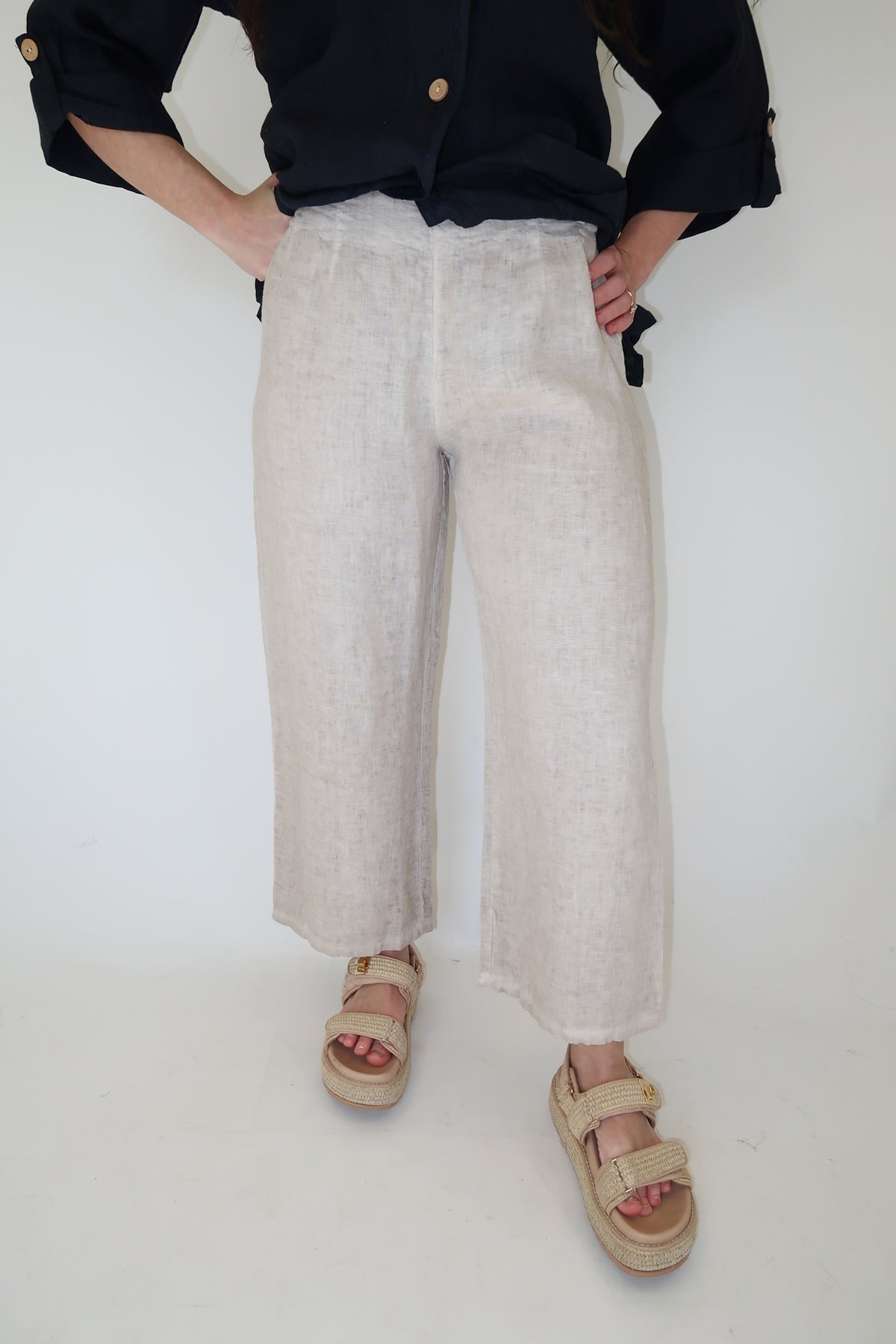 Natural Linen Cropped Pants – Tailored Front, Comfortable Back