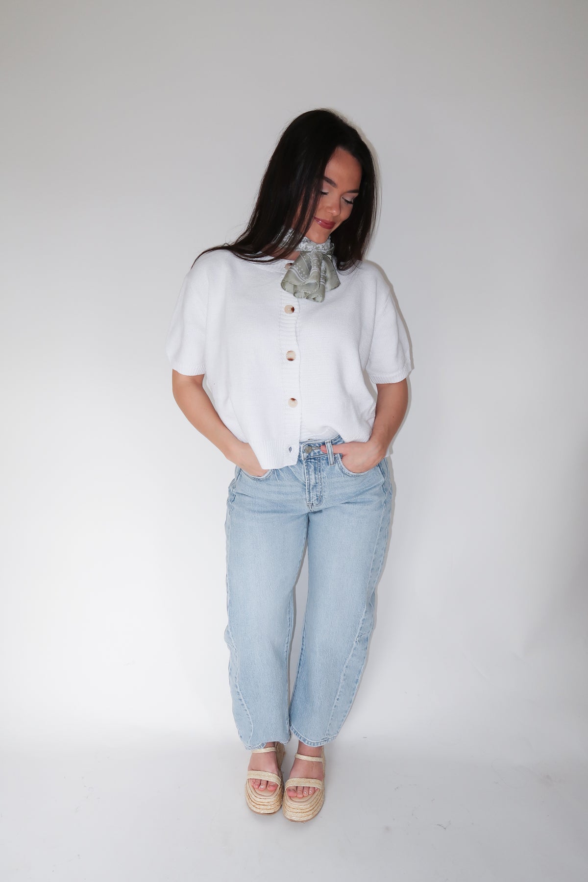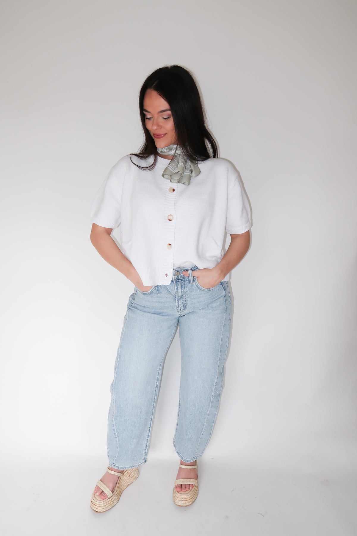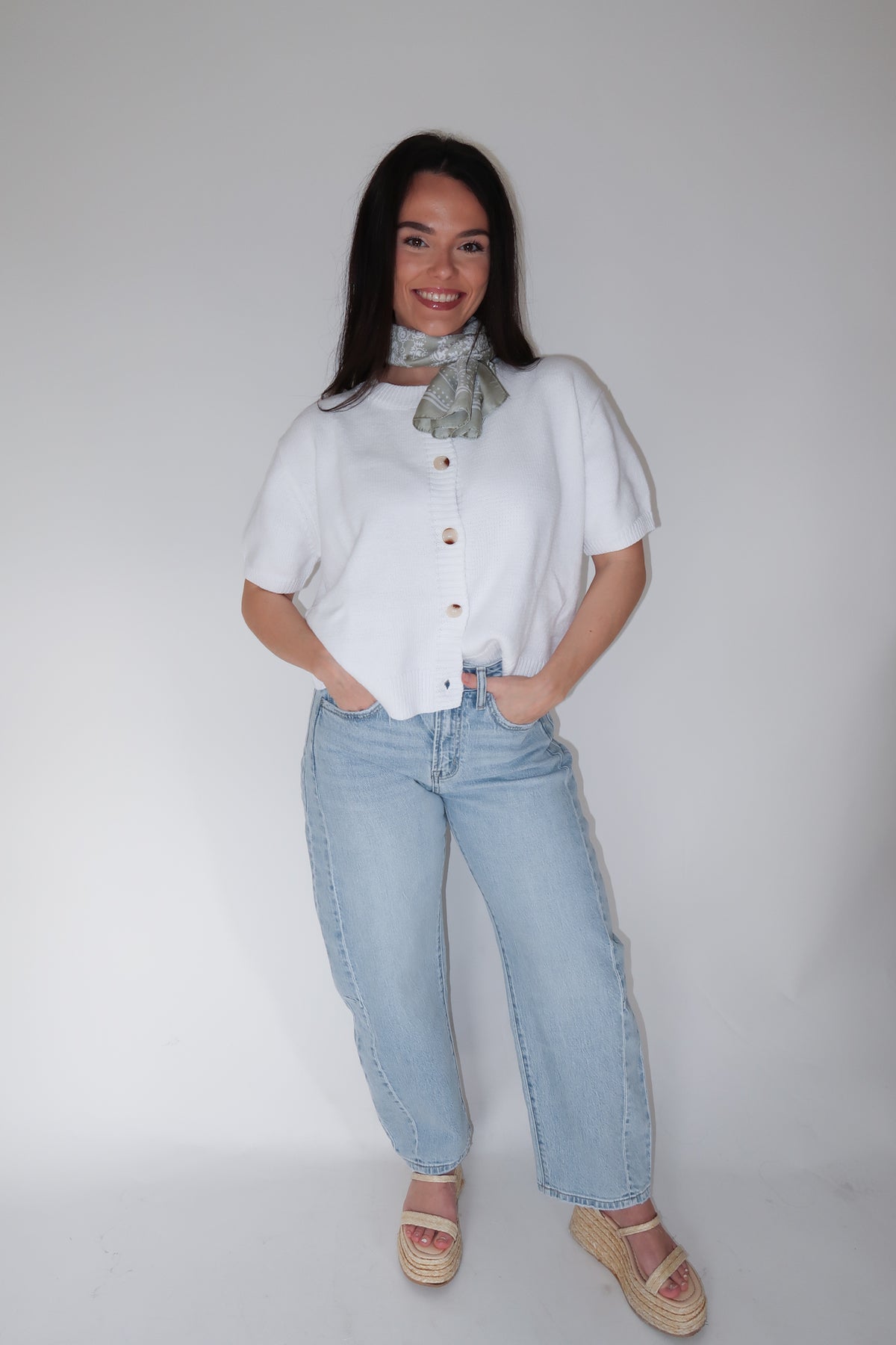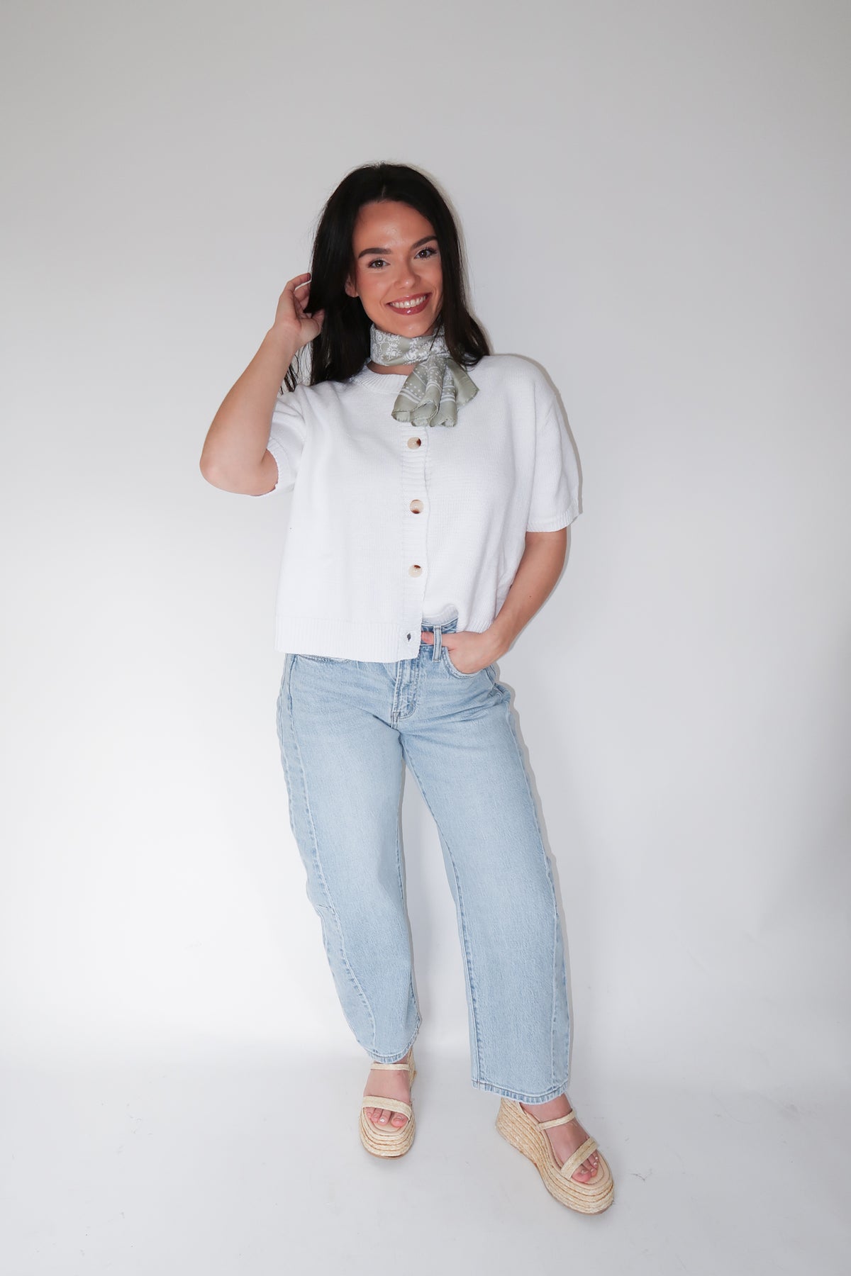 Soft, feminine, and effortlessly polished, this short sleeve sweater cardigan is the perfect lightweight layer for any season. Designed with a classic button-front silhouette and a flattering relaxed fit, it pairs beautifully with denim, skirts, or layered over dresses. The soft knit fabric feels comfortable while still looking elevated, making it an easy go-to for everyday wear.