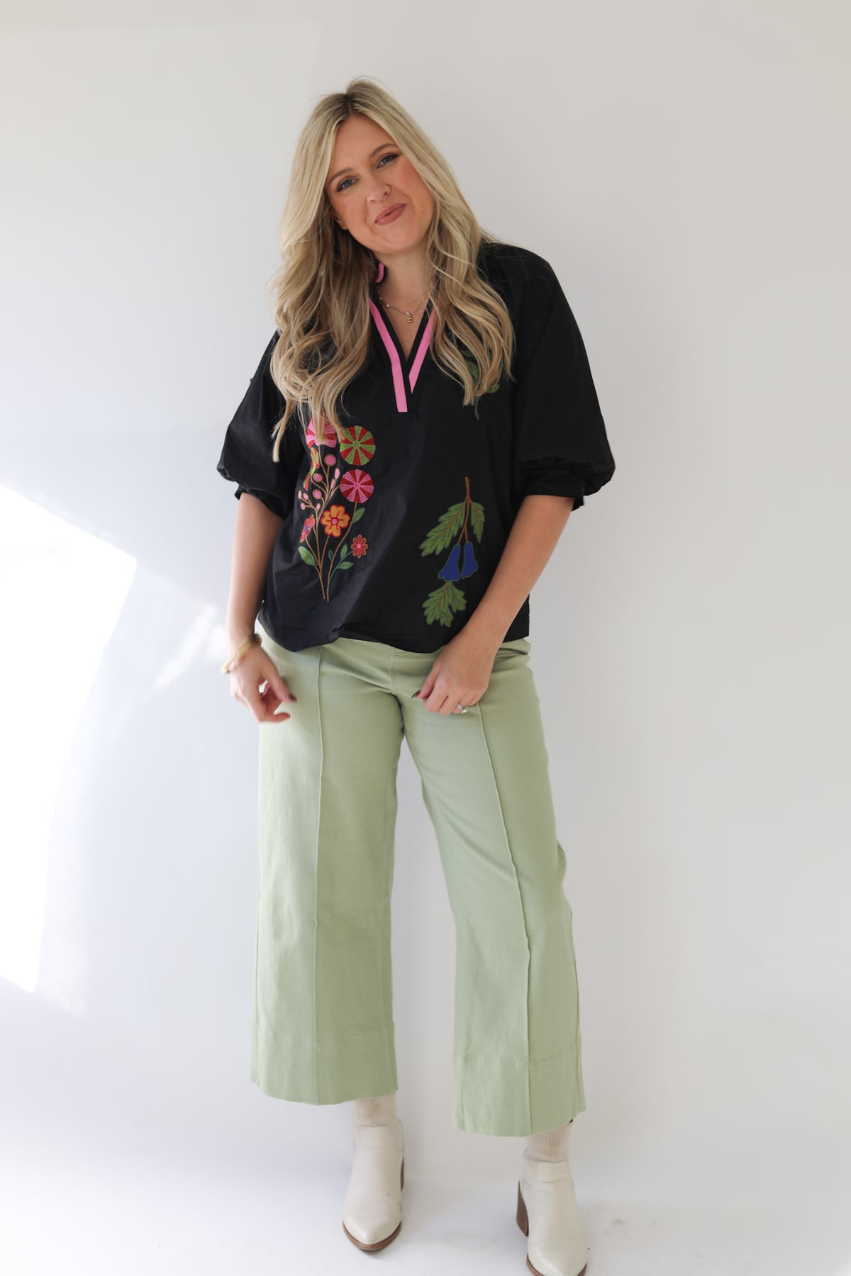 Bright, bold, and full of personality—the Spring Forward Top brings instant cheer to your wardrobe. Made from lightweight 100% cotton, it features vibrant embroidered florals, a contrast-trim V-neckline, and a relaxed fit that’s easy to wear all day. Perfect for adding a fun pop of color to your spring lineup.