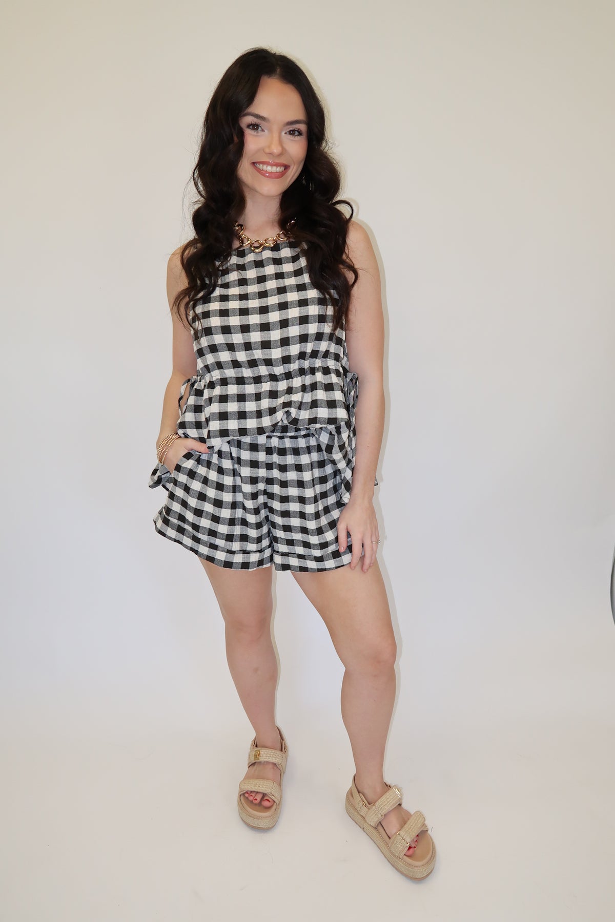Effortless, lightweight, and perfect for warm days — this black gingham tank top brings an easy, laid-back feel to your everyday wardrobe. The classic gingham pattern gives it a timeless charm while the breathable fabric keeps it cool and comfortable for all-day wear.