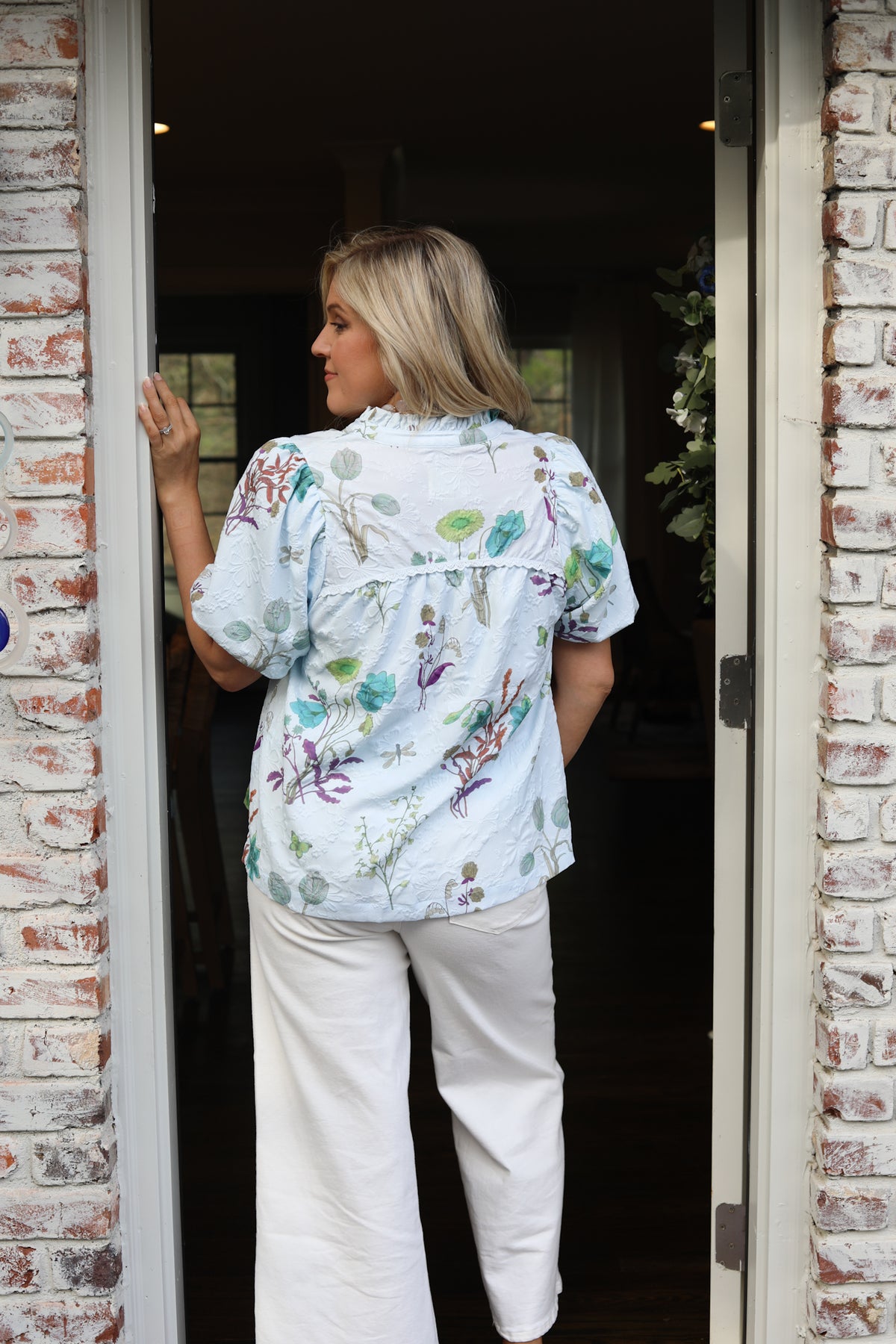 This floral top is the perfect blend of soft structure and everyday ease. Featuring a delicate botanical print on a subtly textured fabric, it offers a relaxed fit that’s polished enough for work but effortless for weekends. The lightweight stretch makes it comfortable all day, while the flattering length pairs perfectly with denim, white pants, or shorts.