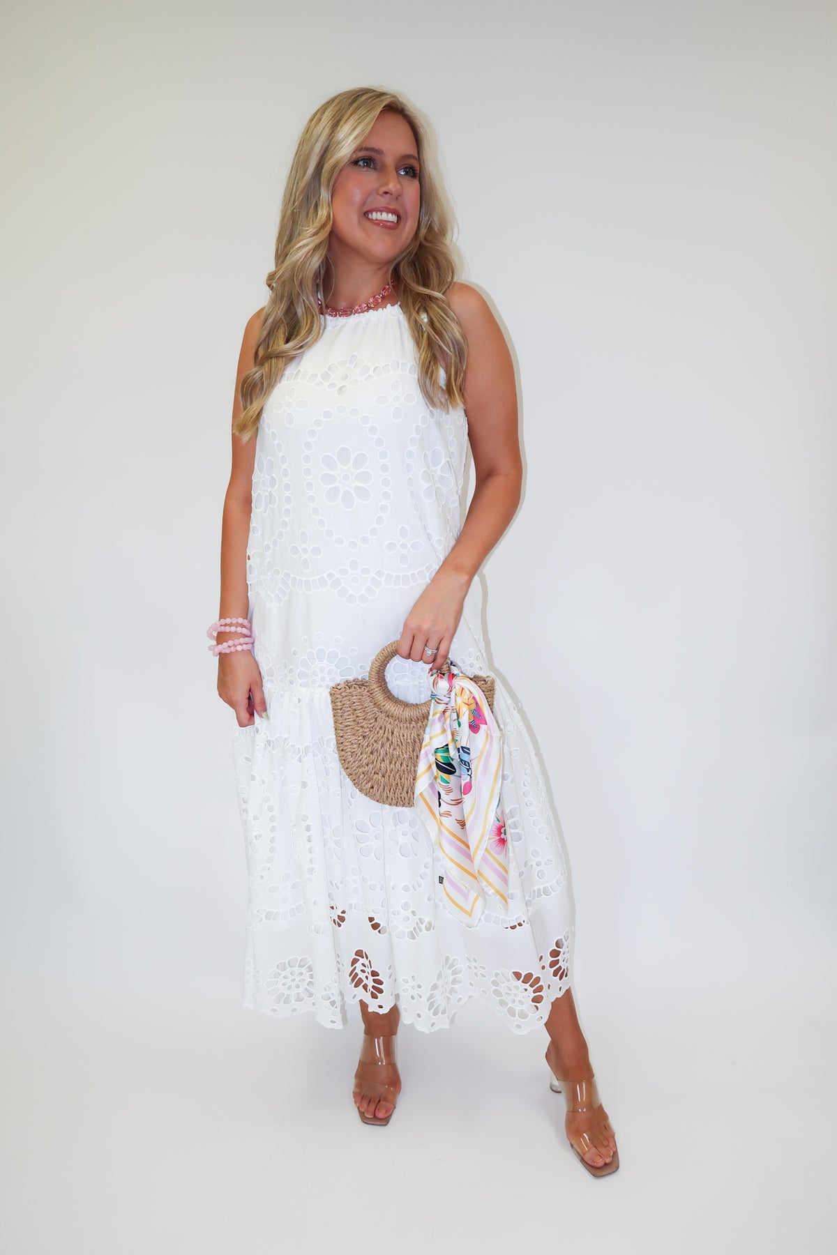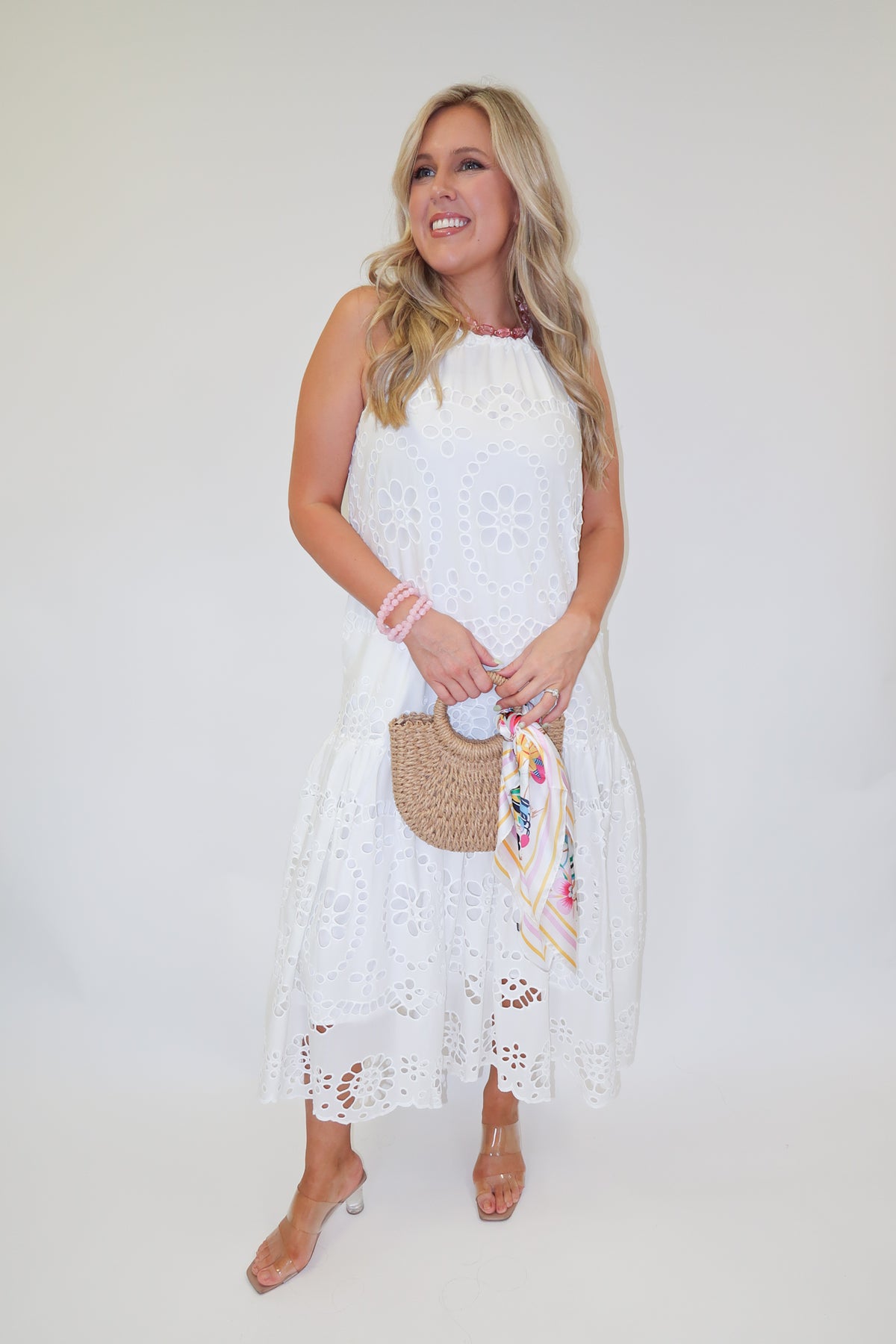 Light, airy, and effortlessly feminine, this off white eyelet midi dress is the kind of piece you’ll reach for all season long. The intricate eyelet embroidery adds beautiful texture and dimension, while the soft off white color keeps the look classic, fresh, and easy to style for everything from brunch to beach vacations.