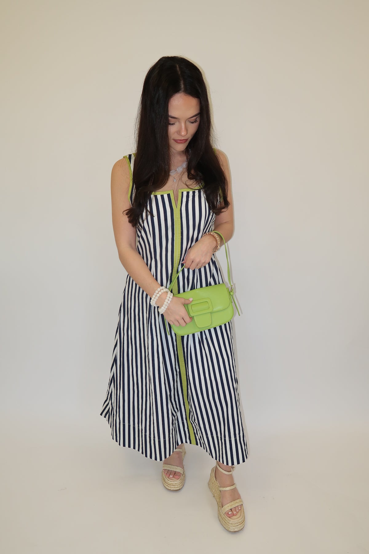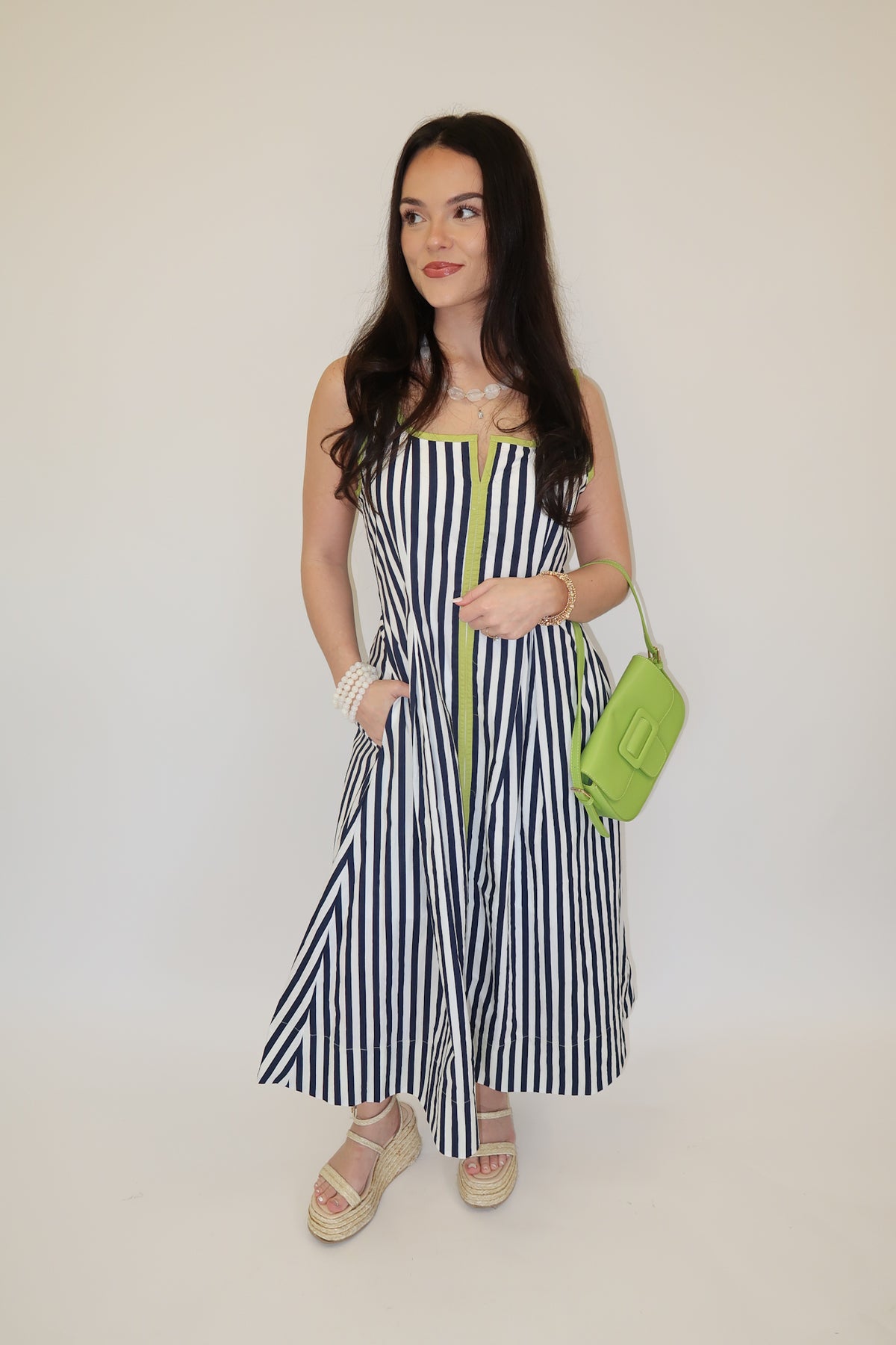 This striped cotton dress is such a standout for spring and summer events. The bold vertical stripes feel fun yet polished, while the easy A-line shape keeps it flattering and comfortable all day long. Fully lined for coverage, it’s lightweight, breathable, and effortless to style with sandals or wedges.