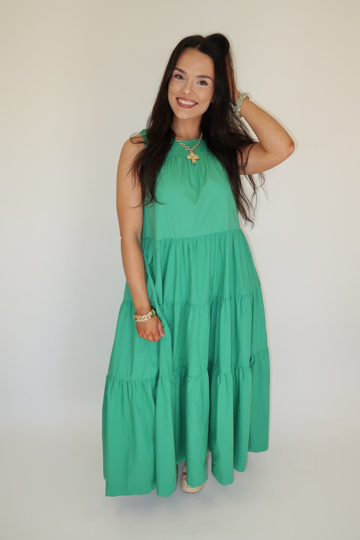 Easy, breezy, and effortlessly elegant, this green tiered midi dress is the kind of piece you’ll reach for all season long. The flowy silhouette and vibrant color make it a standout while still feeling comfortable enough for everyday wear. Designed with soft tiers and a relaxed fit, this dress moves beautifully and creates a flattering, feminine shape.
