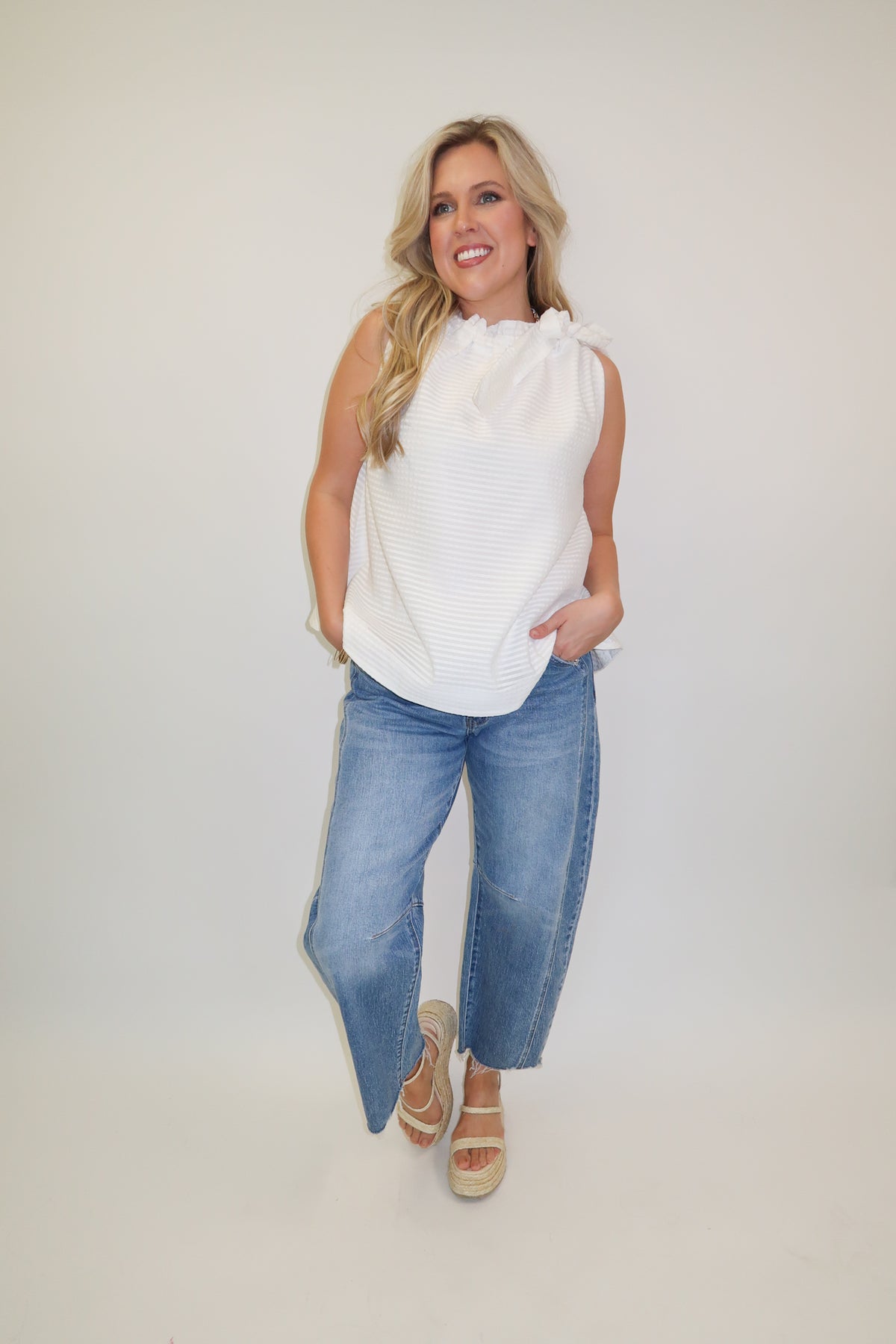Textured White Adjustable Neck Top